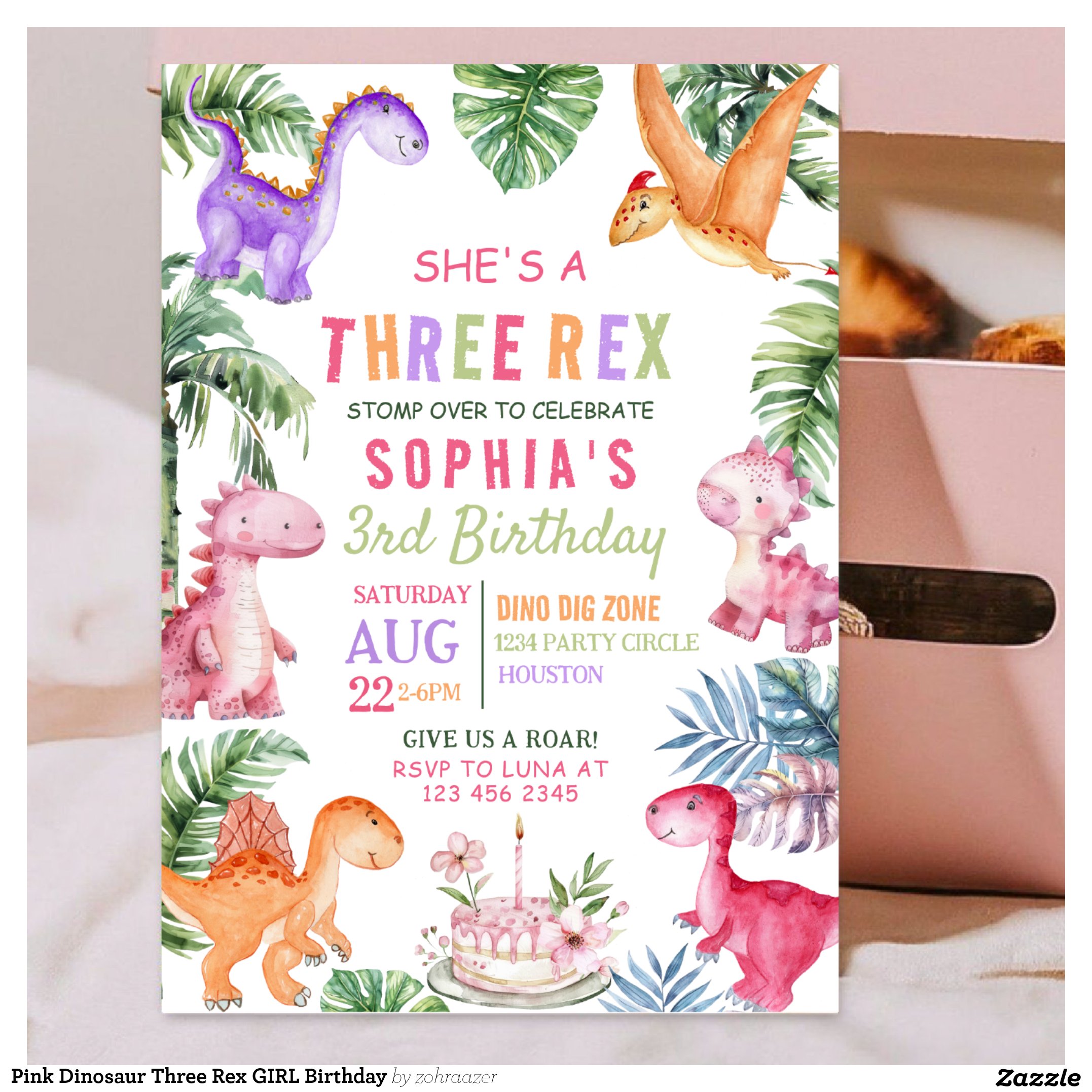 Be the first to review “Pink Dinosaur Three Rex GIRL Birthday Invitation”