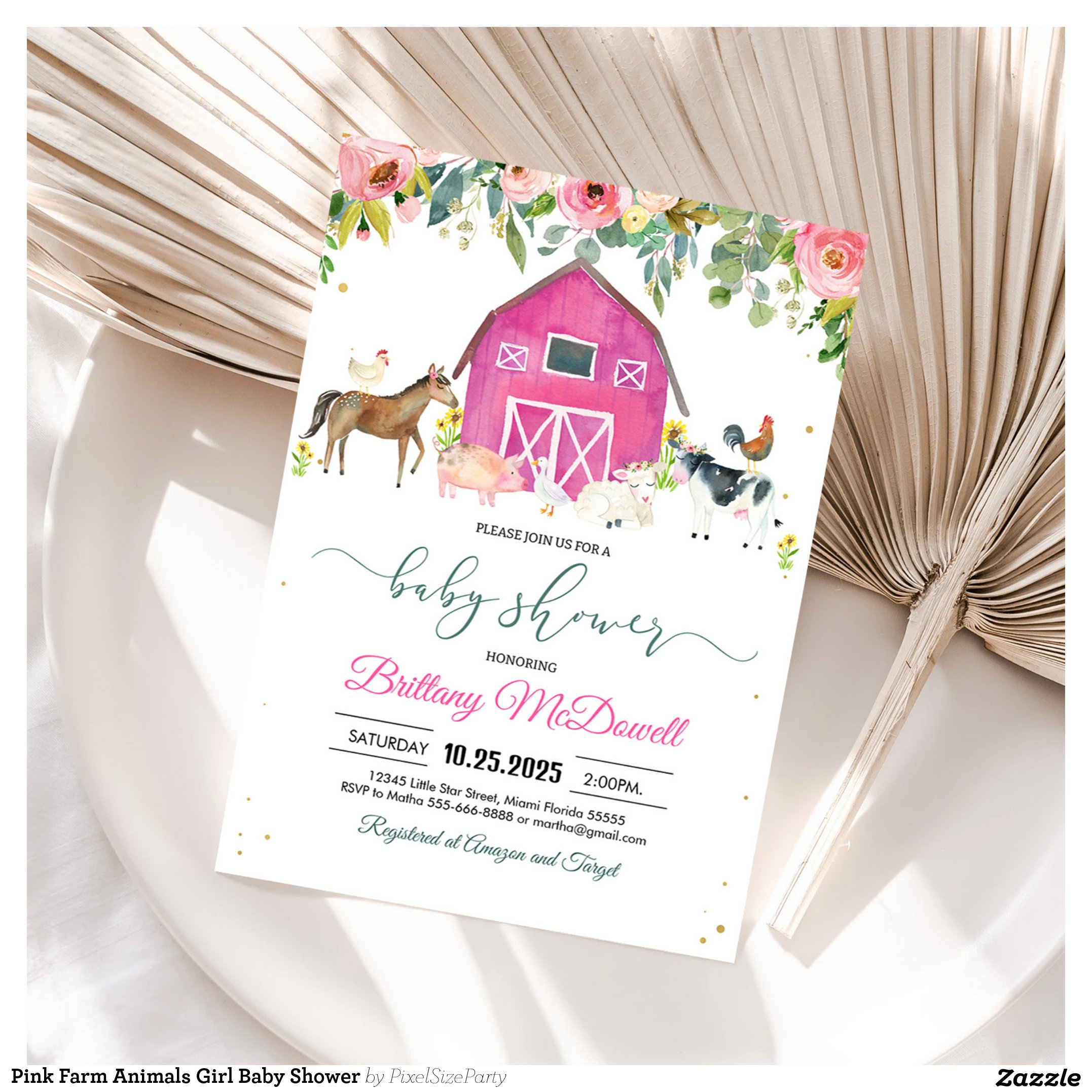 Pink Farm Animals Girl Baby Shower Invitation