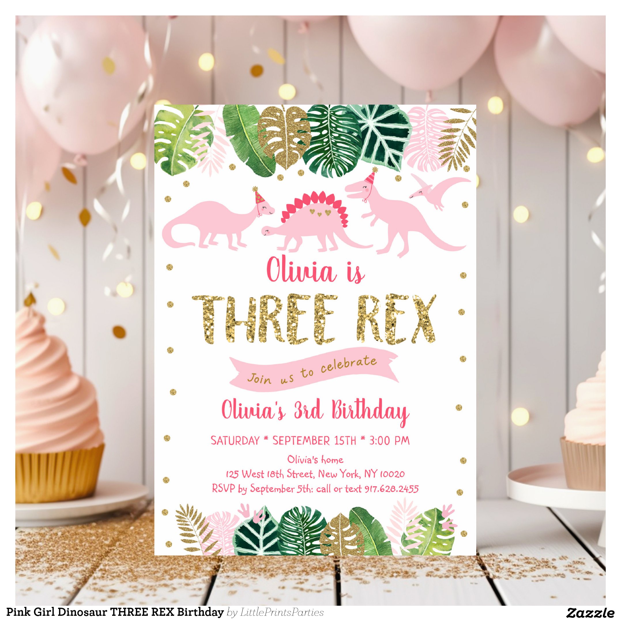 Be the first to review “Pink Girl Dinosaur THREE REX Birthday Invitation”