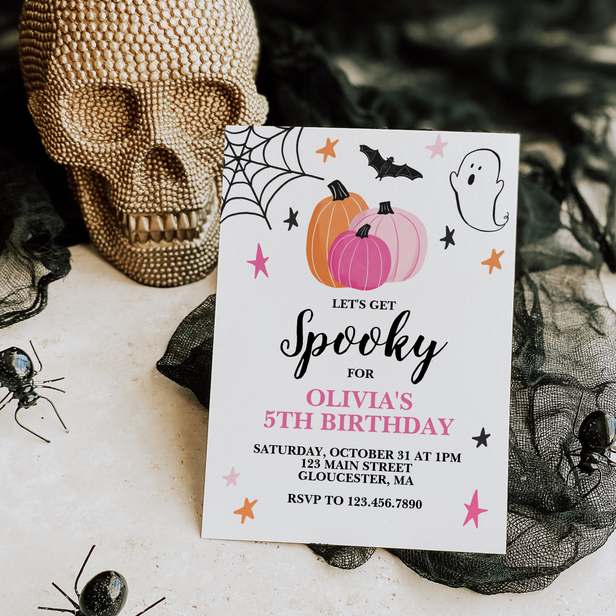 Pink Halloween Spooktacular Girl Birthday Invitation