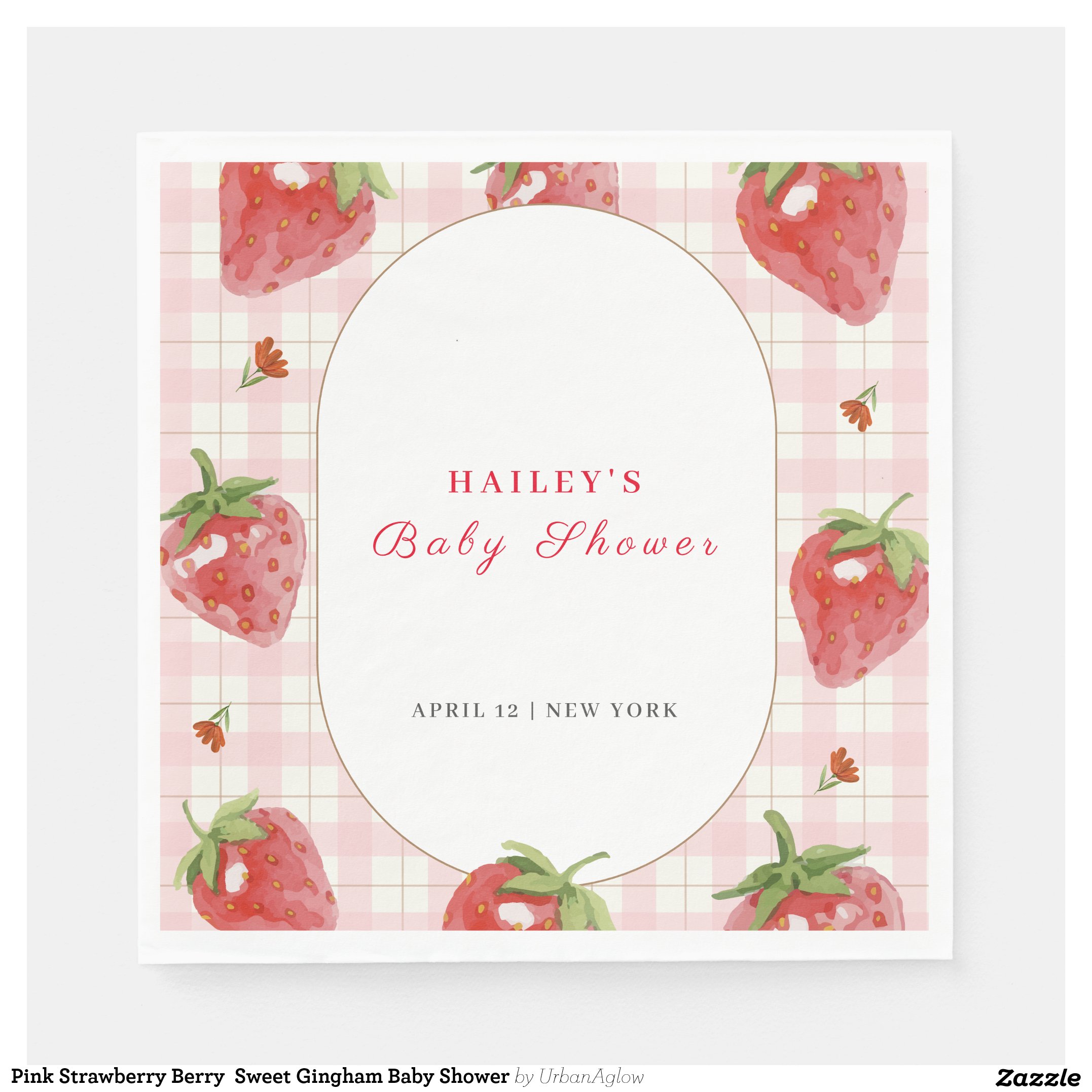 Pink Strawberry Berry Sweet Gingham Baby Shower Napkins