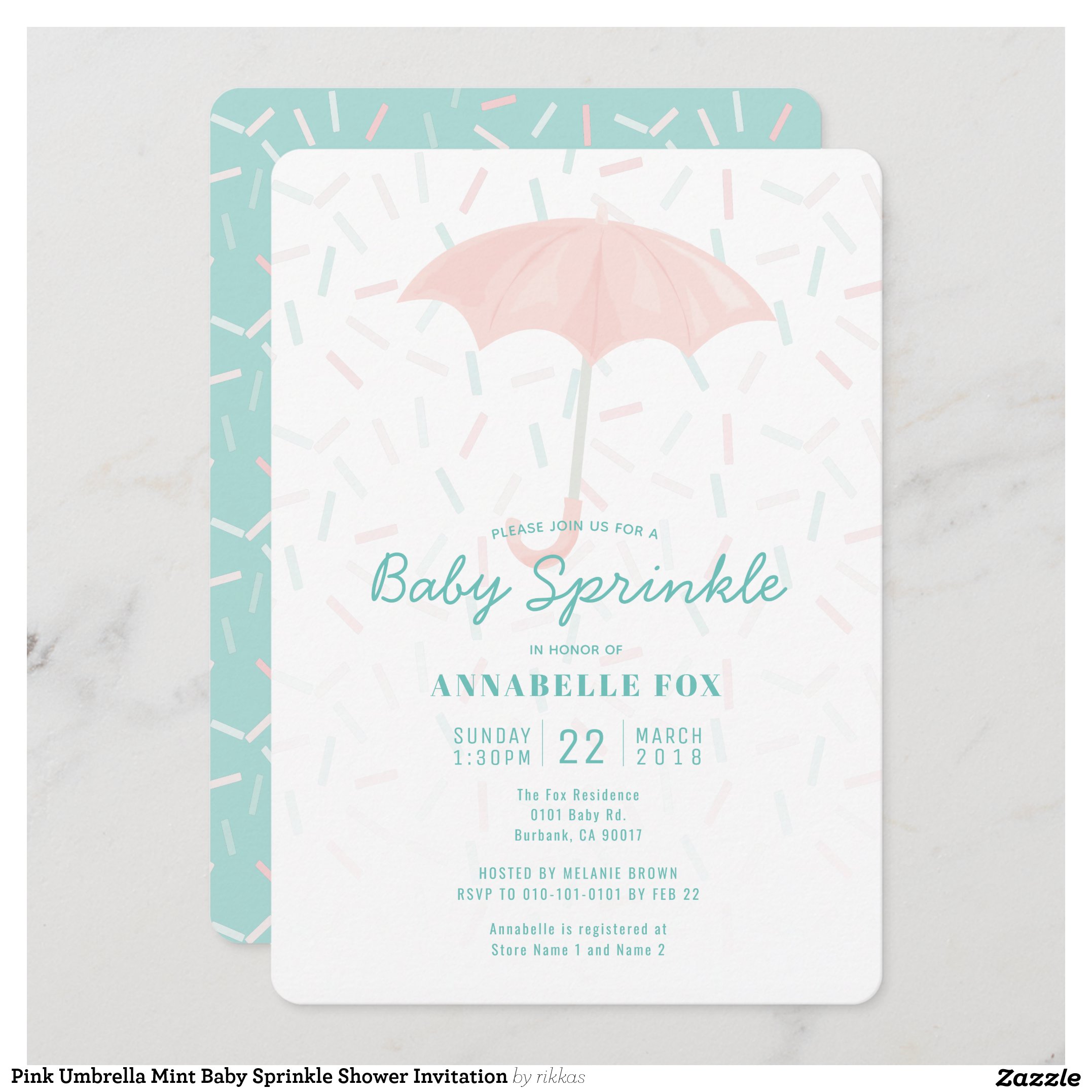Be the first to review “Pink Umbrella Mint Baby Sprinkle Shower Invitation”