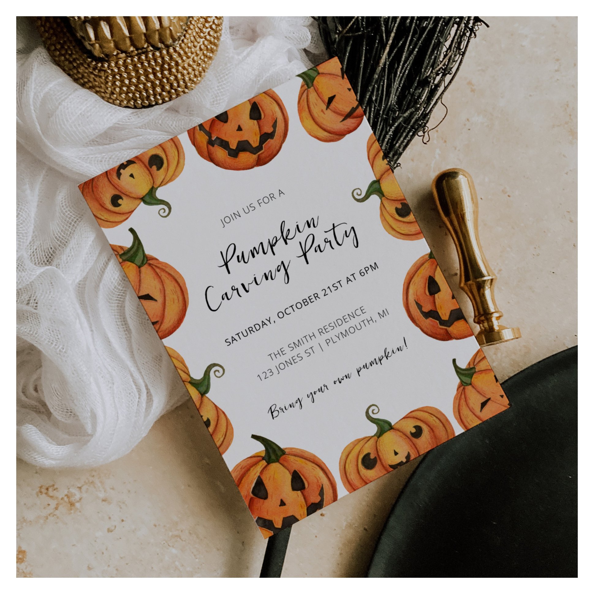 Be the first to review “Pumpkin Carving Halloween Invitation”