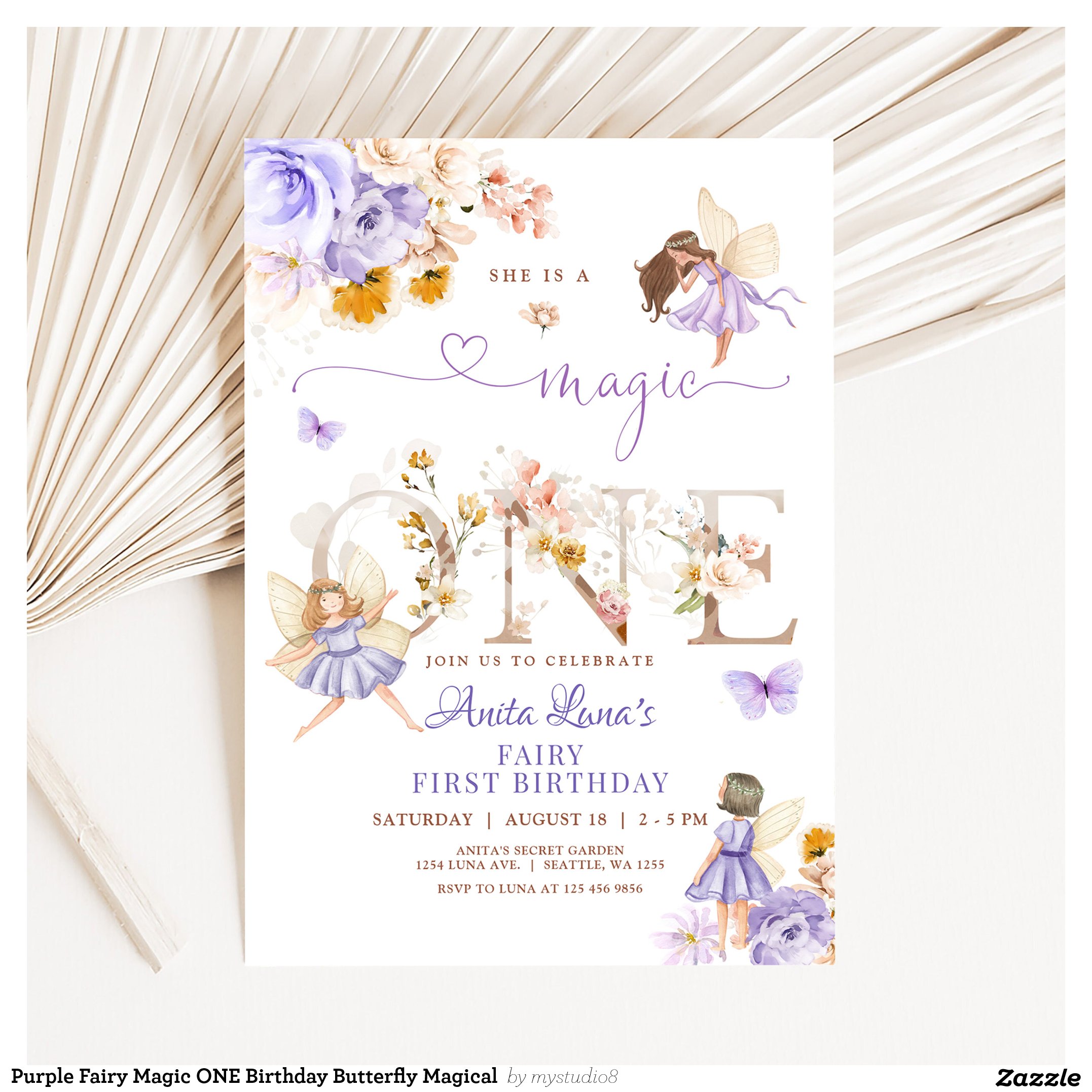 Purple Fairy Magic ONE Birthday Butterfly Magical Invitation