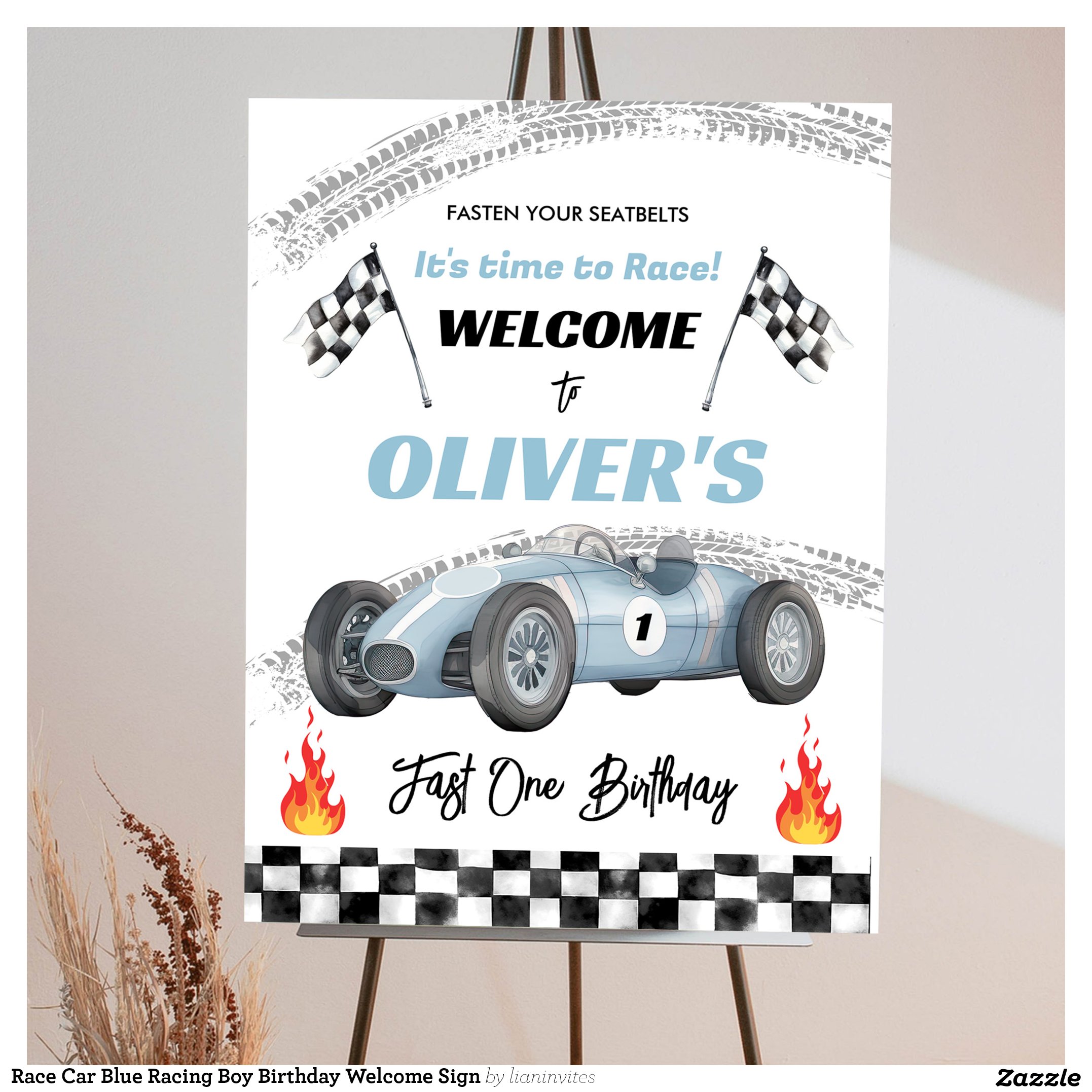 Race Car Blue Racing Boy Birthday Welcome Sign