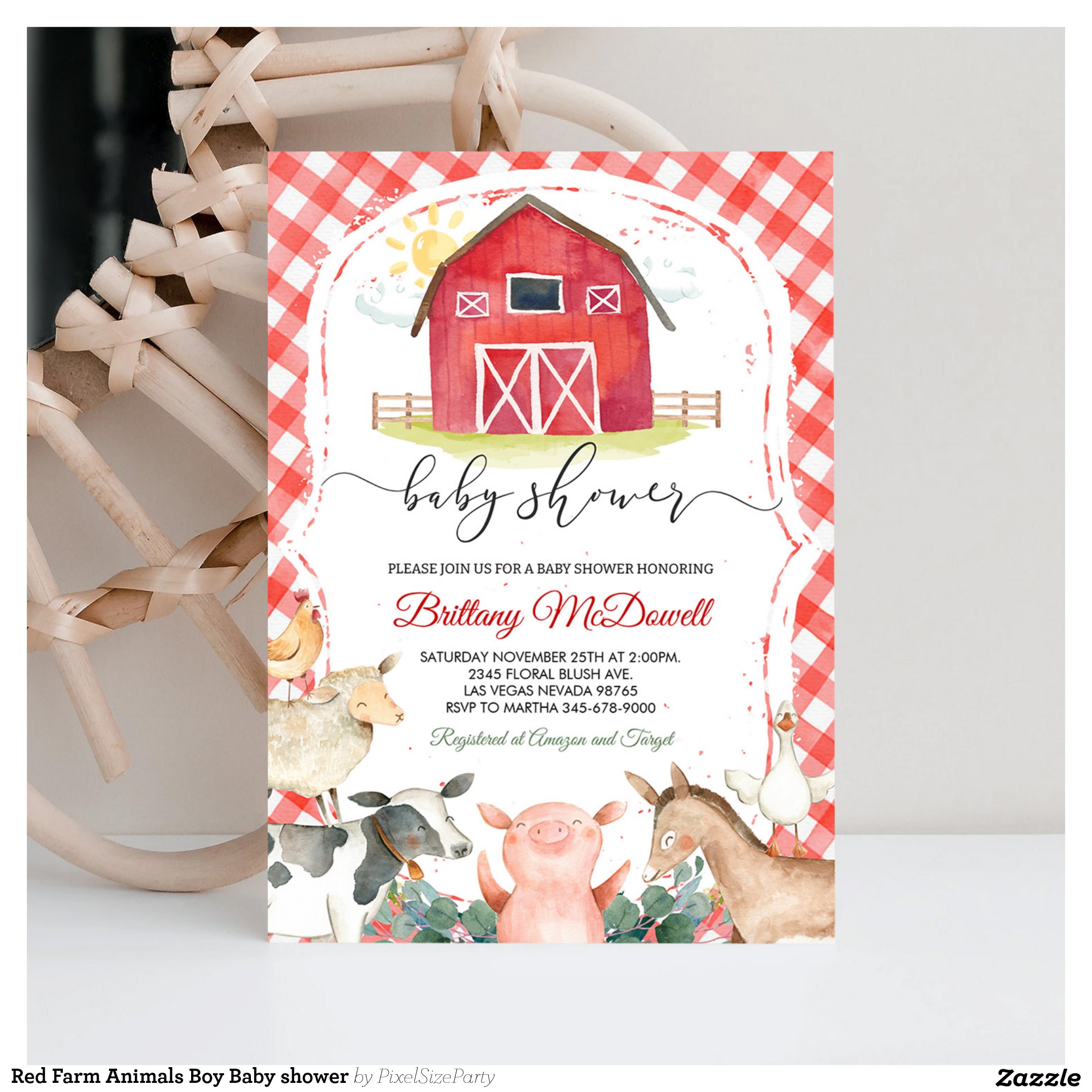 Be the first to review “Red Farm Animals Boy Baby shower Invitation”