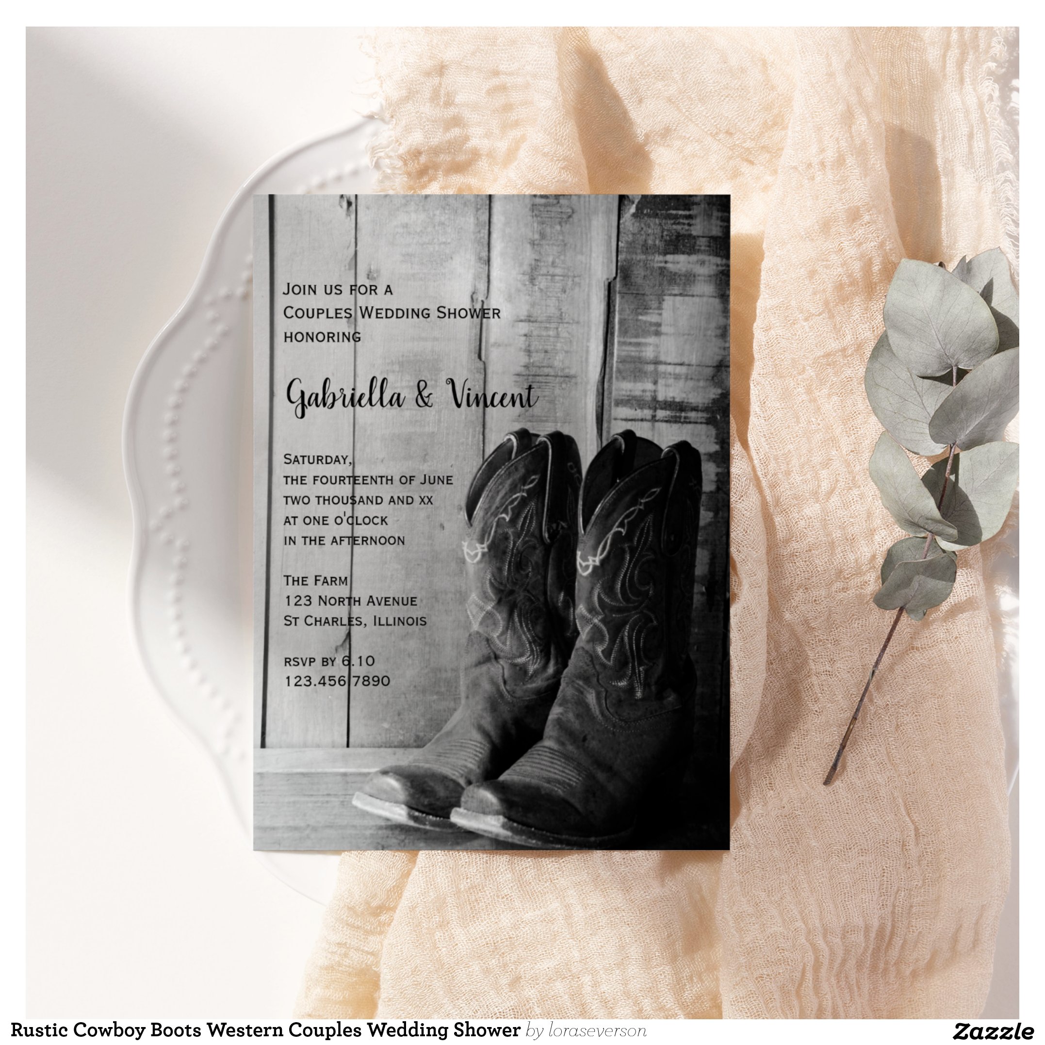 Rustic Cowboy Boots Western Couples Wedding Shower Invitation