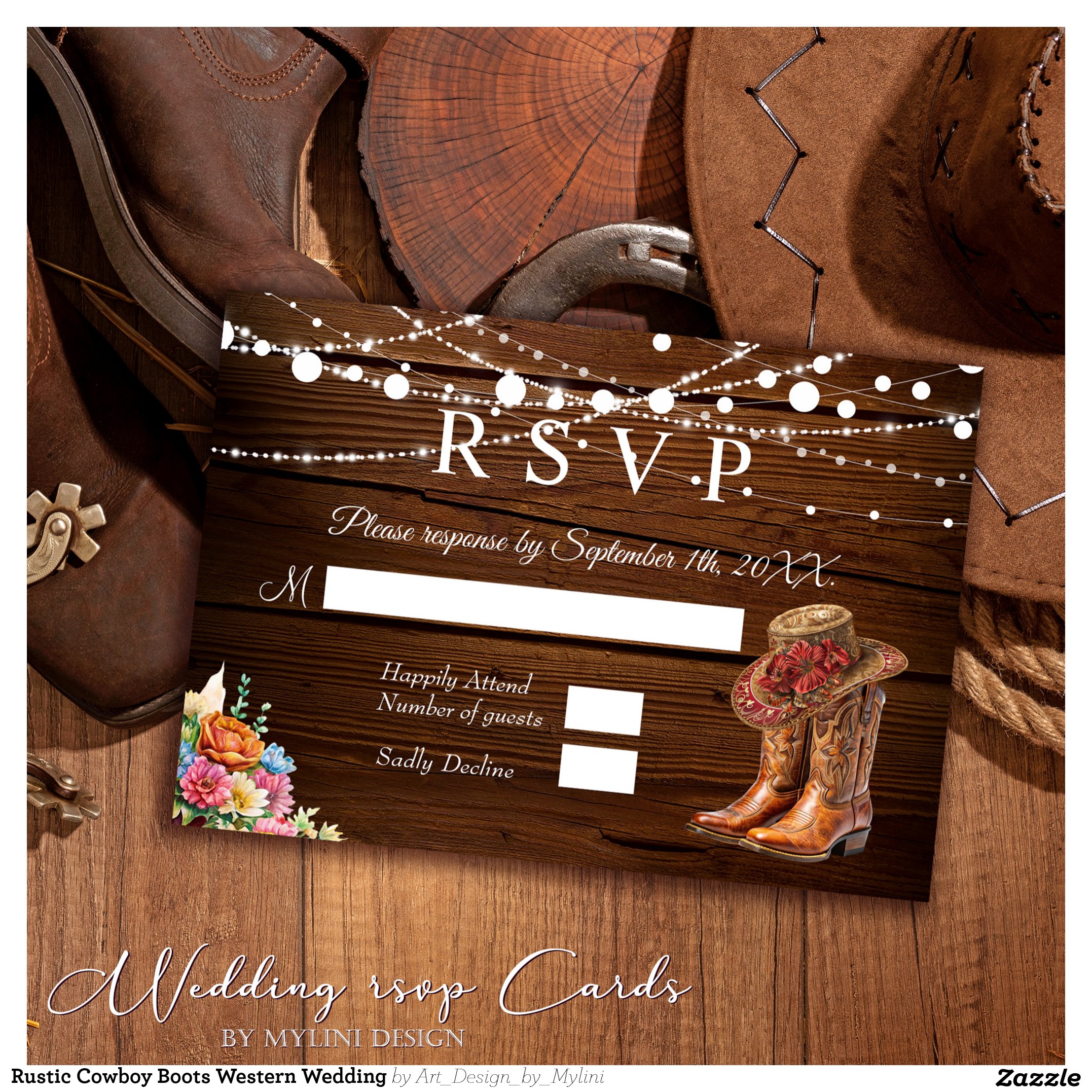 Rustic Cowboy Boots Western Wedding RSVP Card