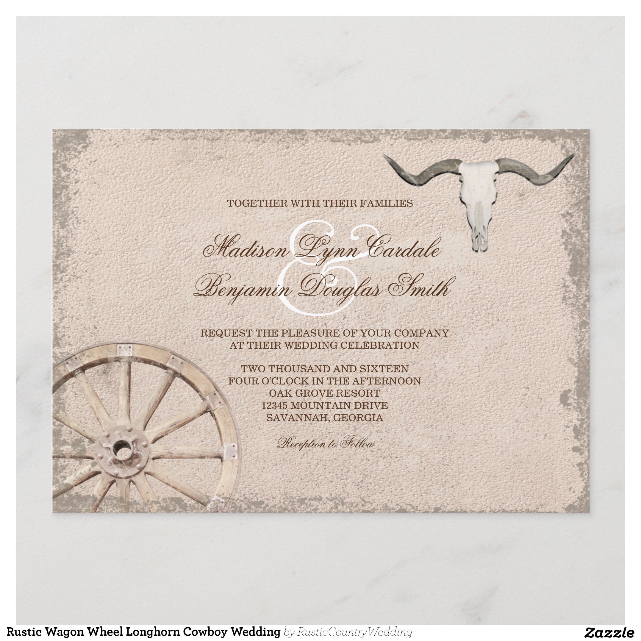 Rustic Wagon Wheel Longhorn Cowboy Wedding Invitation