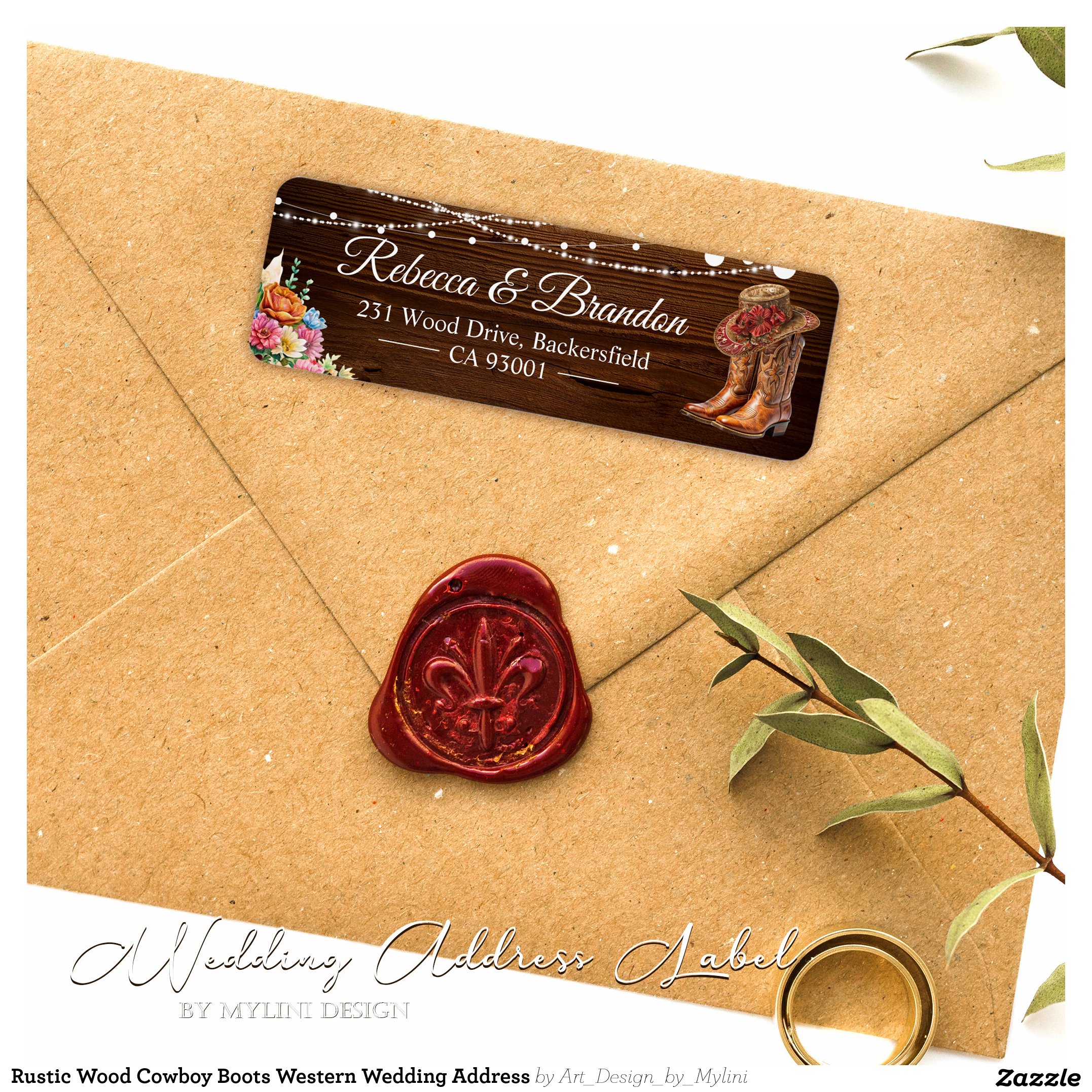Rustic Wood Cowboy Boots Western Wedding Address Label