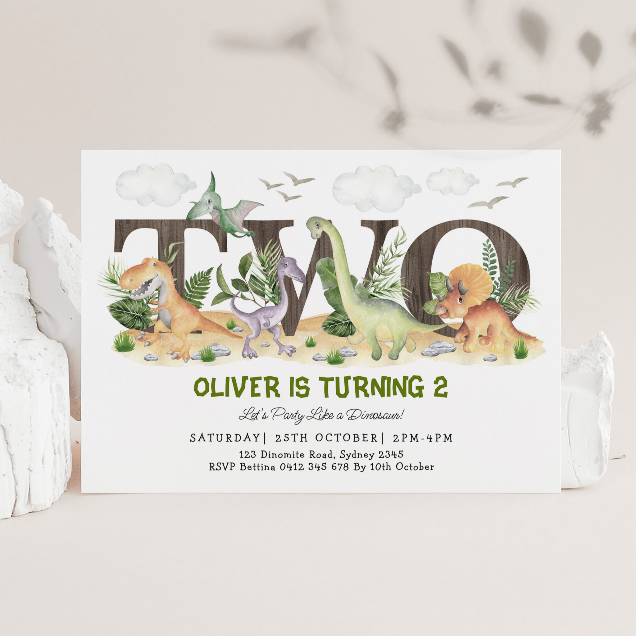 Scenic Dinosaur Two Wild 2nd Birthday Party Invitation