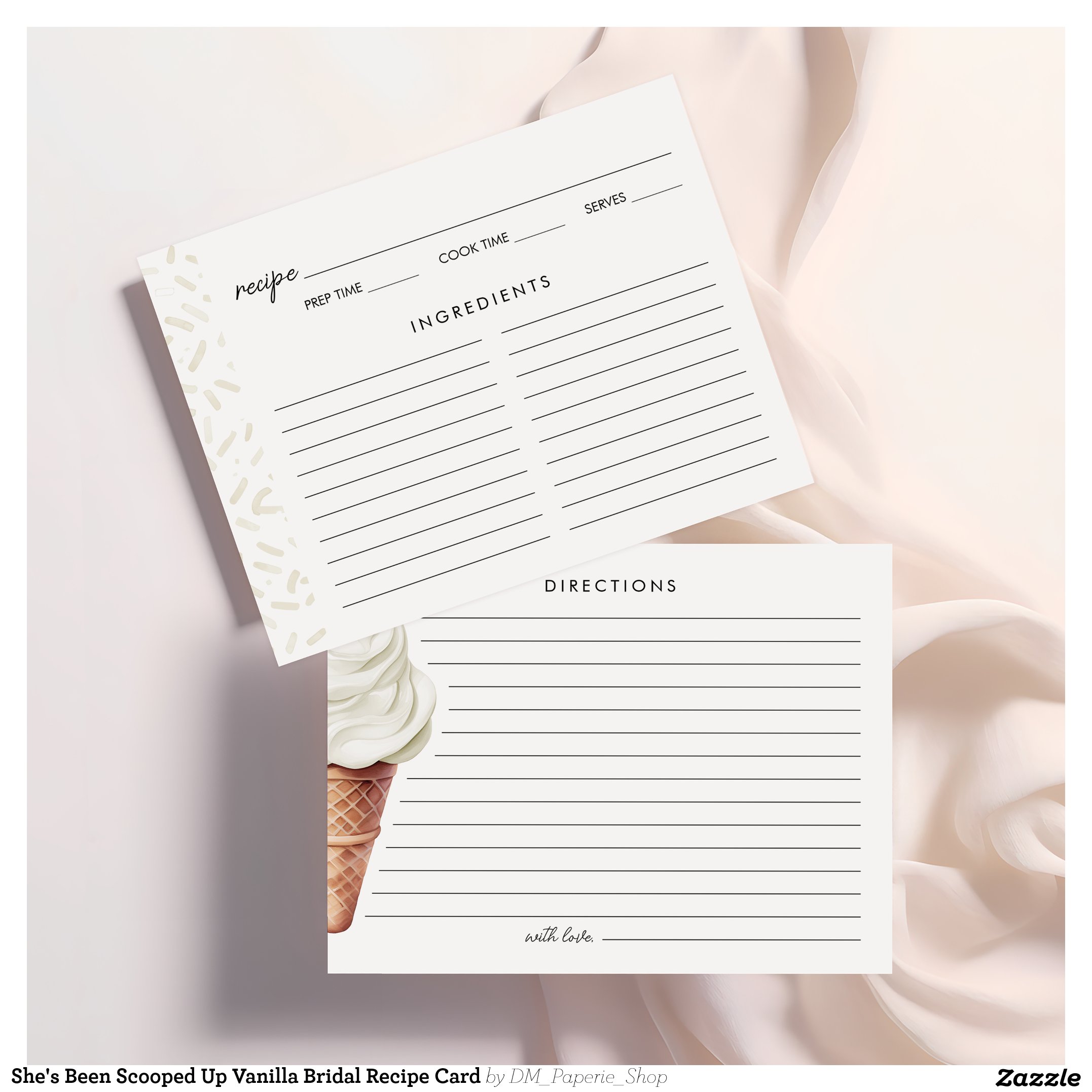 She’s Been Scooped Up Vanilla Bridal Recipe Card