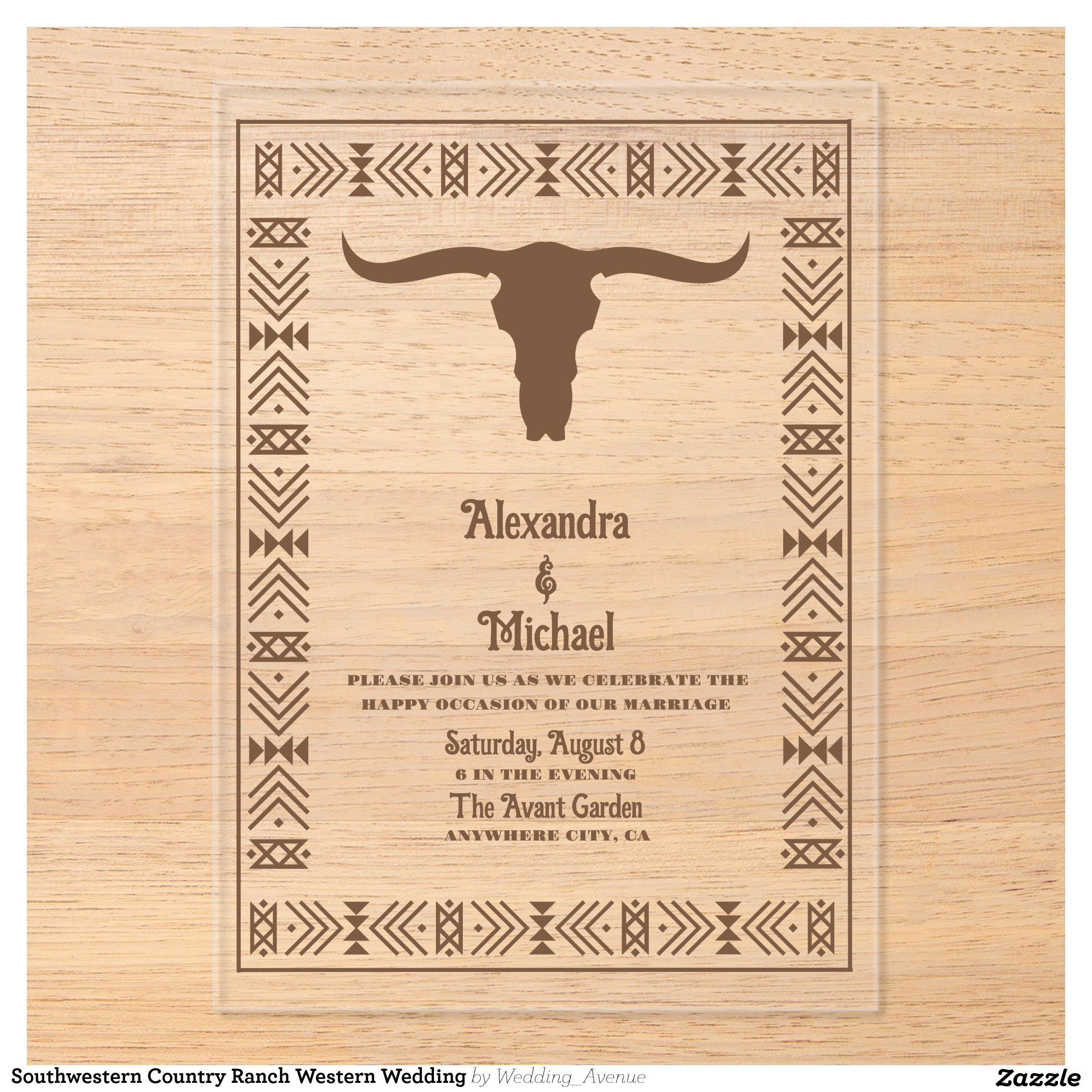 Southwestern Country Ranch Western Wedding Acrylic Invitations