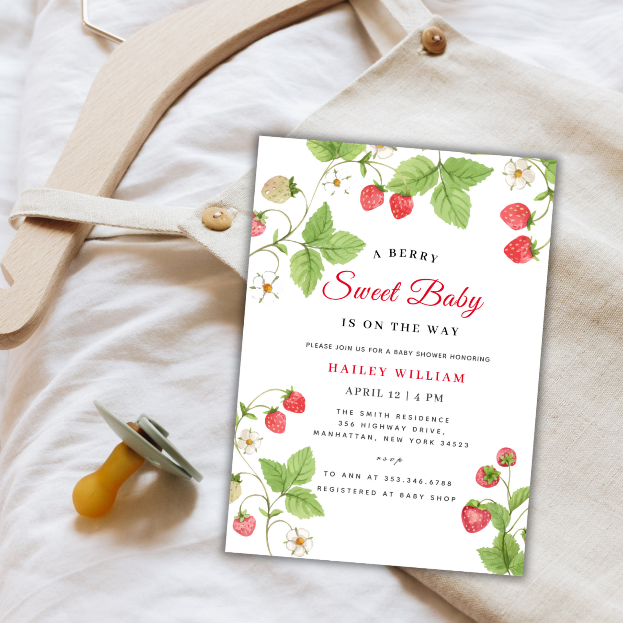 Be the first to review “Strawberry Berry Sweet Greenery Baby Shower Invitation”