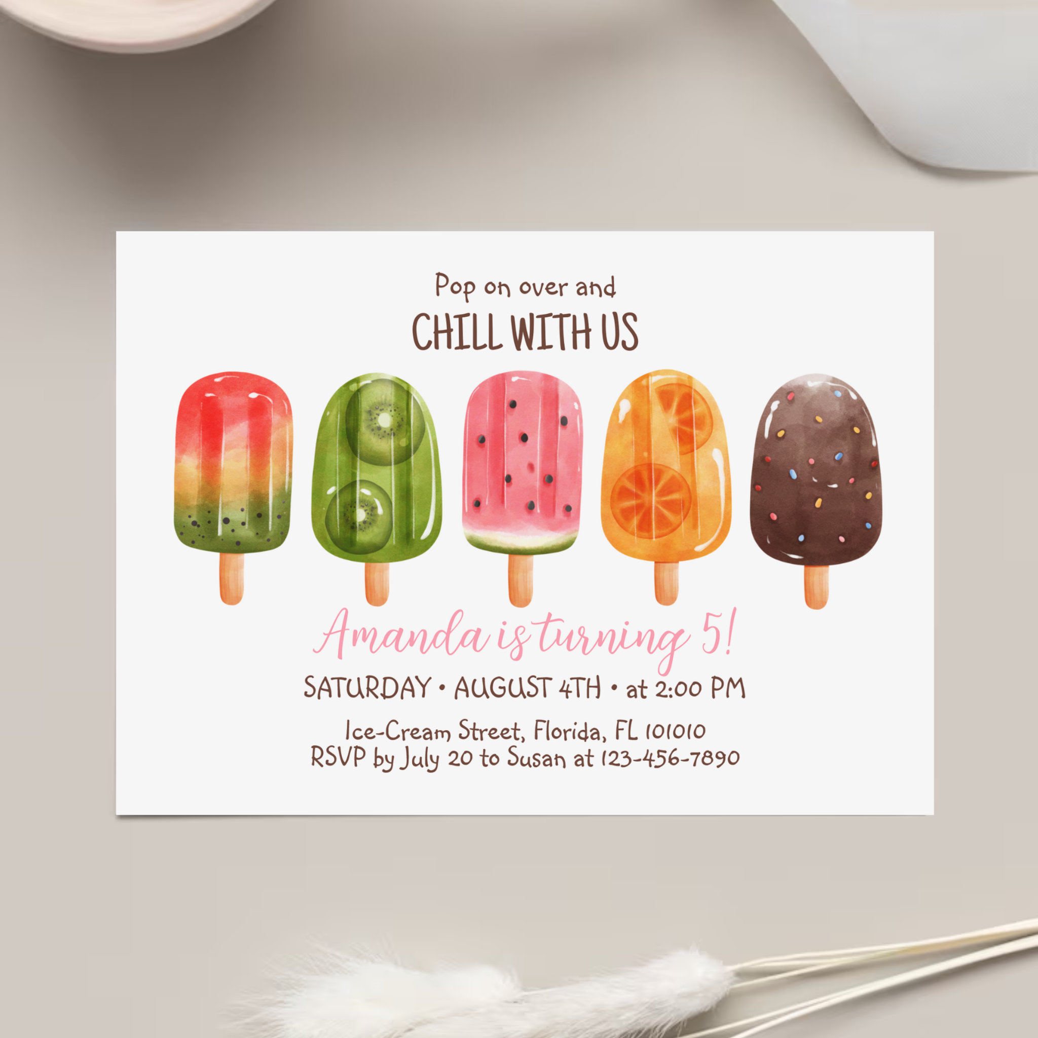 Be the first to review “Summer Ice Cream Birthday Invite Popsicle Invite”
