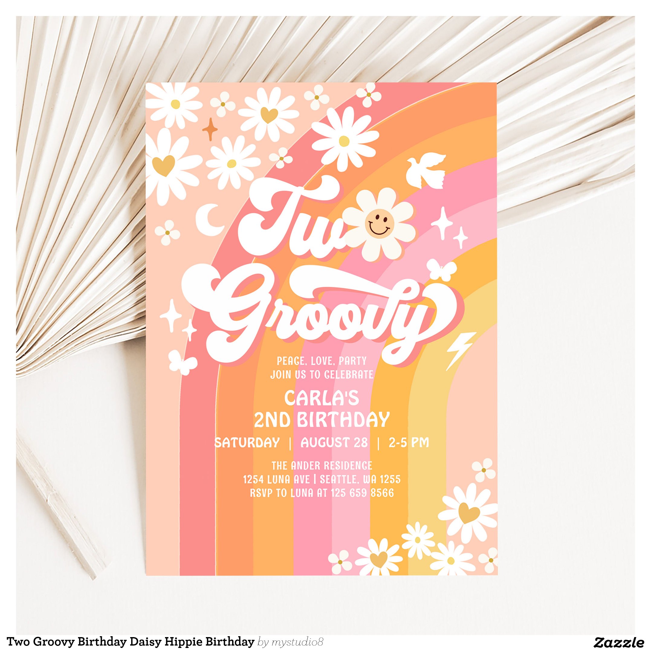 Two Groovy Birthday Daisy Hippie Birthday Invitation