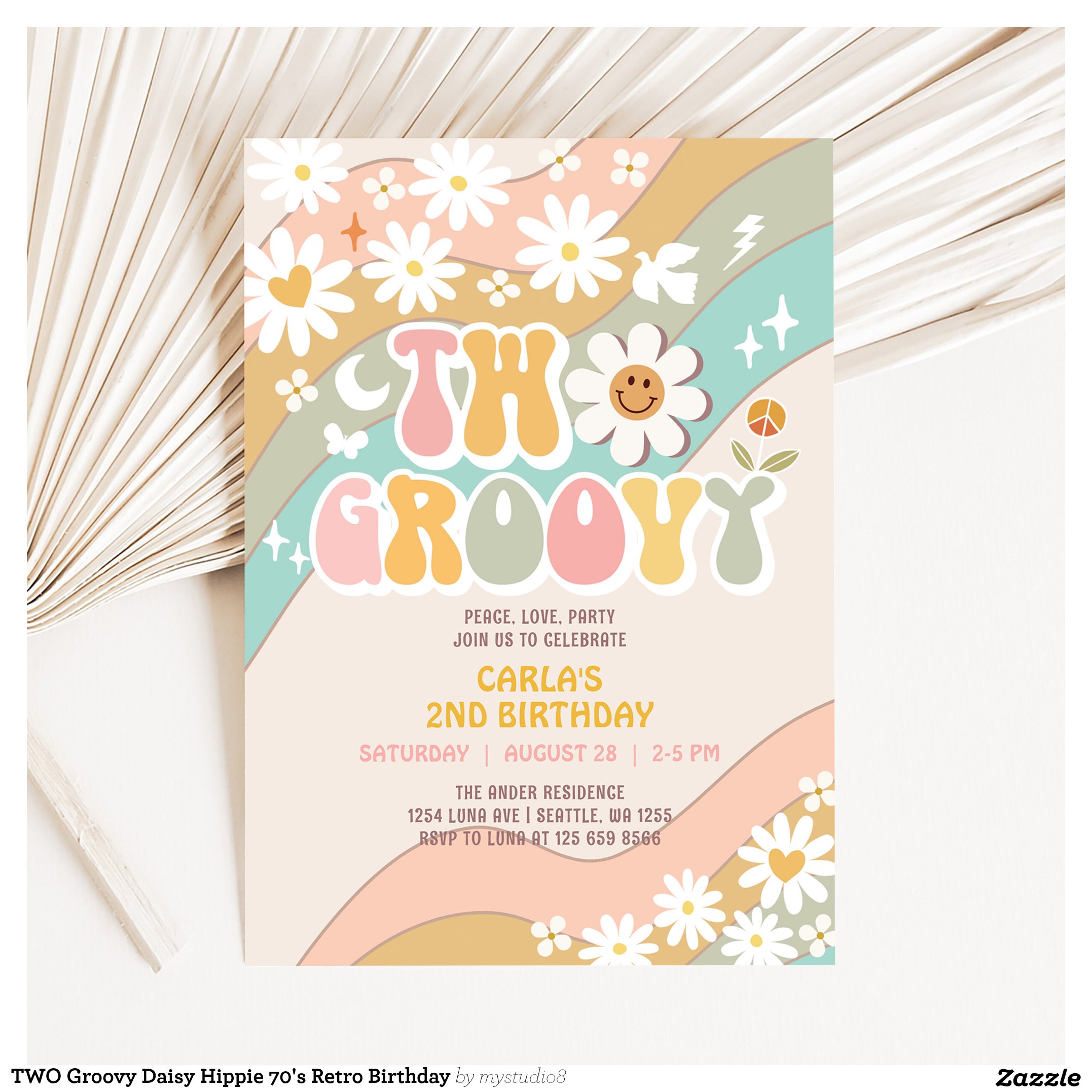 TWO Groovy Daisy Hippie 70’s Retro Birthday Invitation