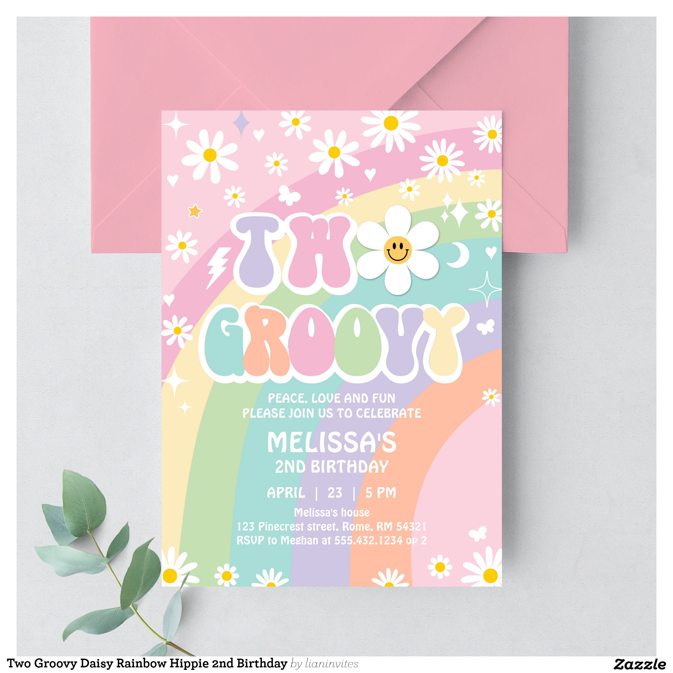 Be the first to review “Two Groovy Daisy Rainbow Hippie 2nd Birthday Invitation”