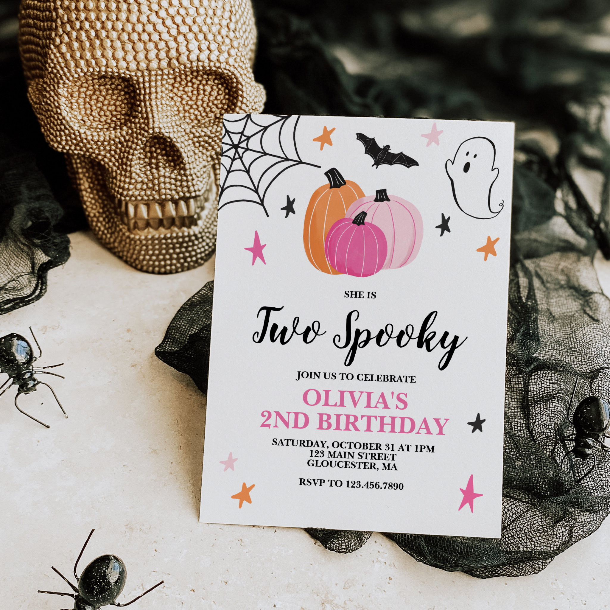 Two Spooky Pink Halloween 2nd Birthday Invitation