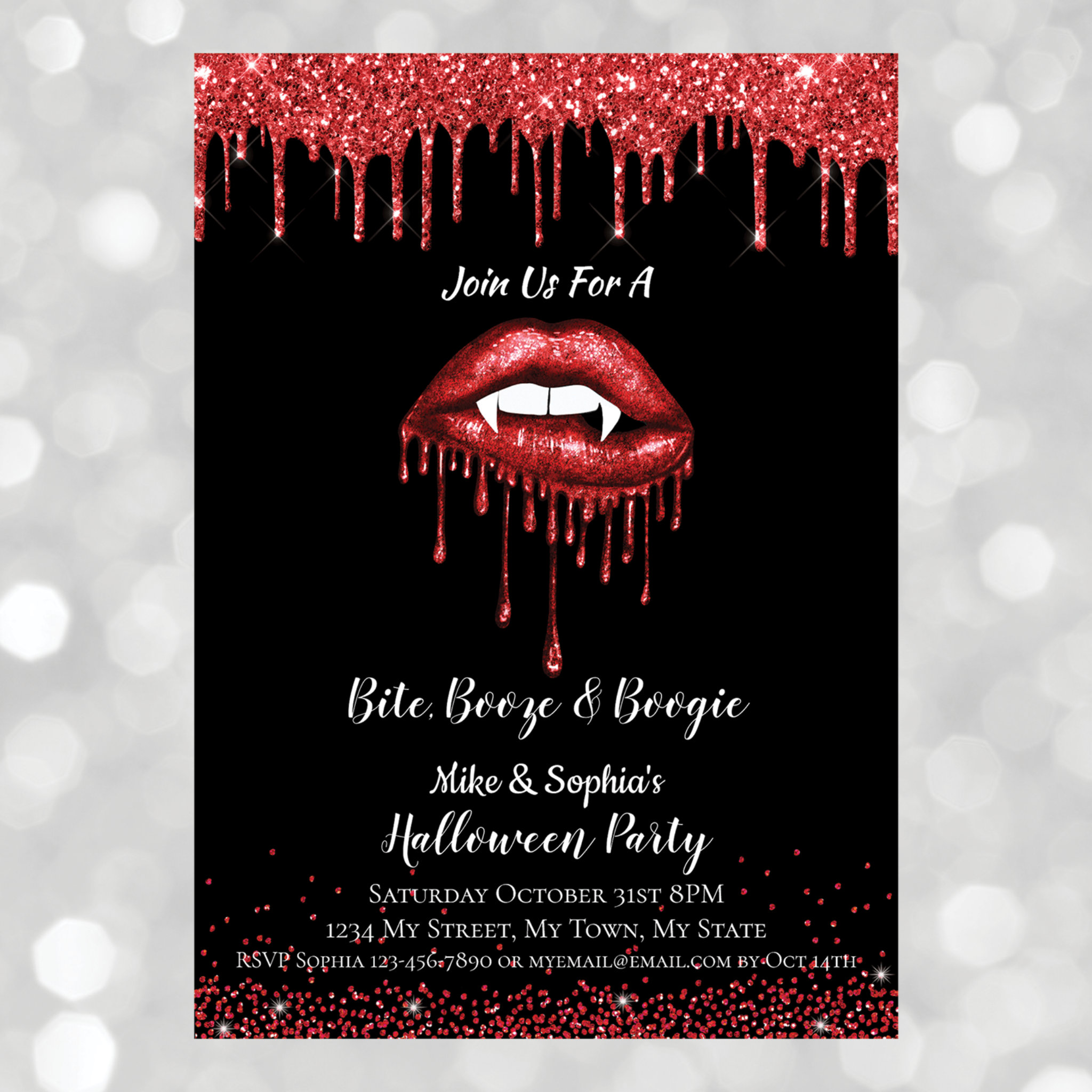 Vampire red glitter lips adult Halloween party Invitation