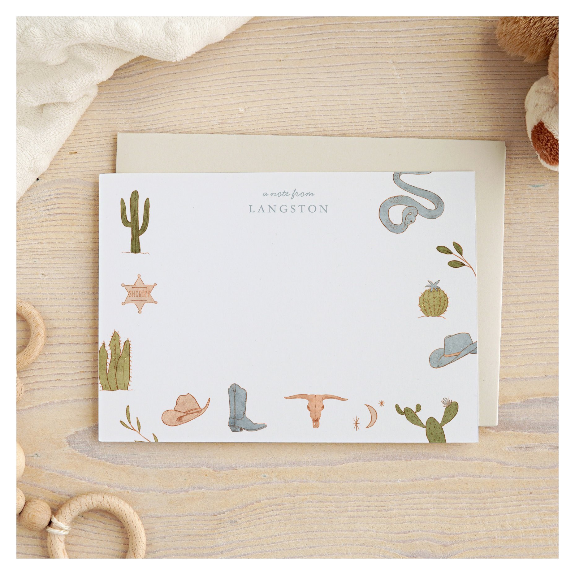 Western Cowboy Blue Kids Note Card