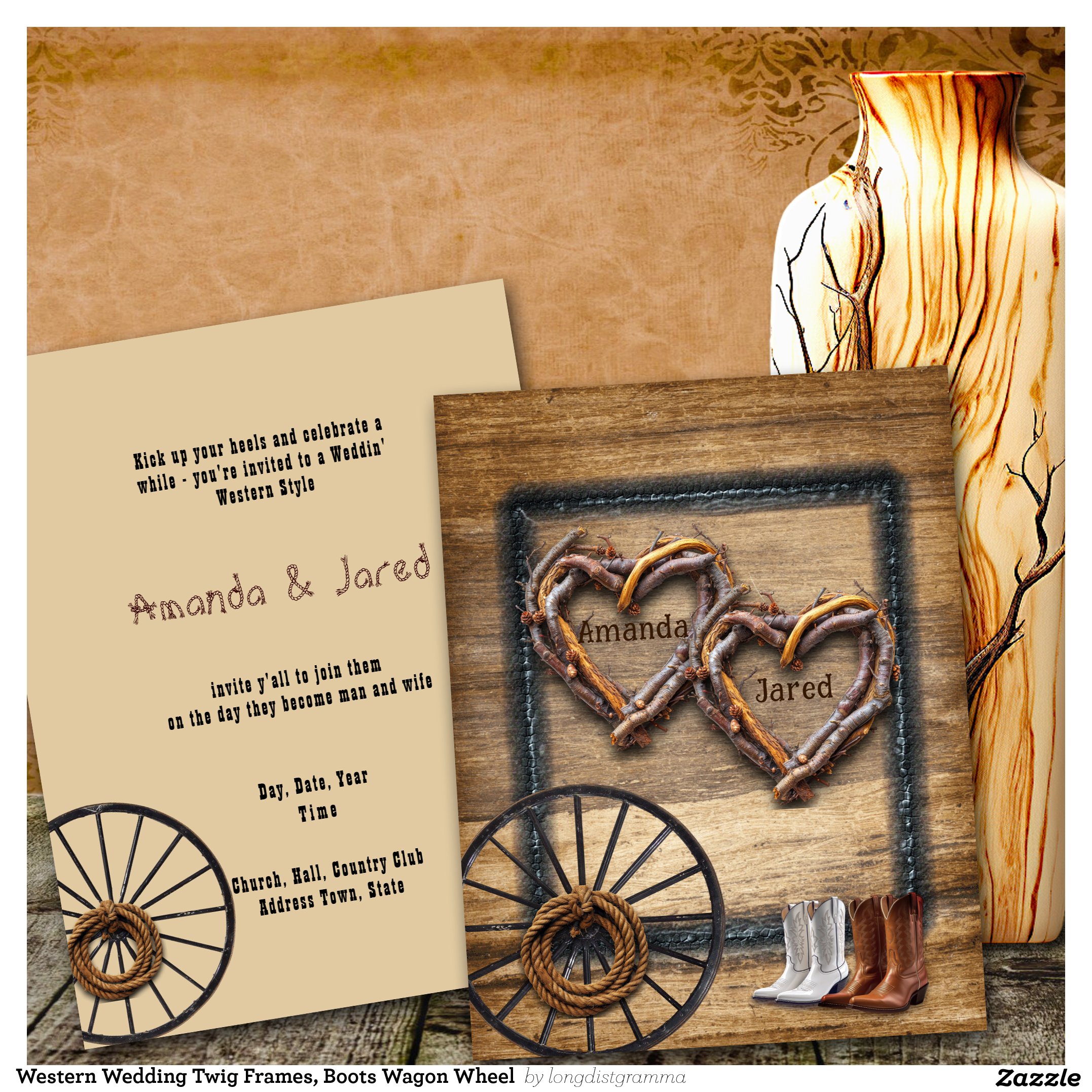 Western Wedding Twig Frames, Boots Wagon Wheel Invitation