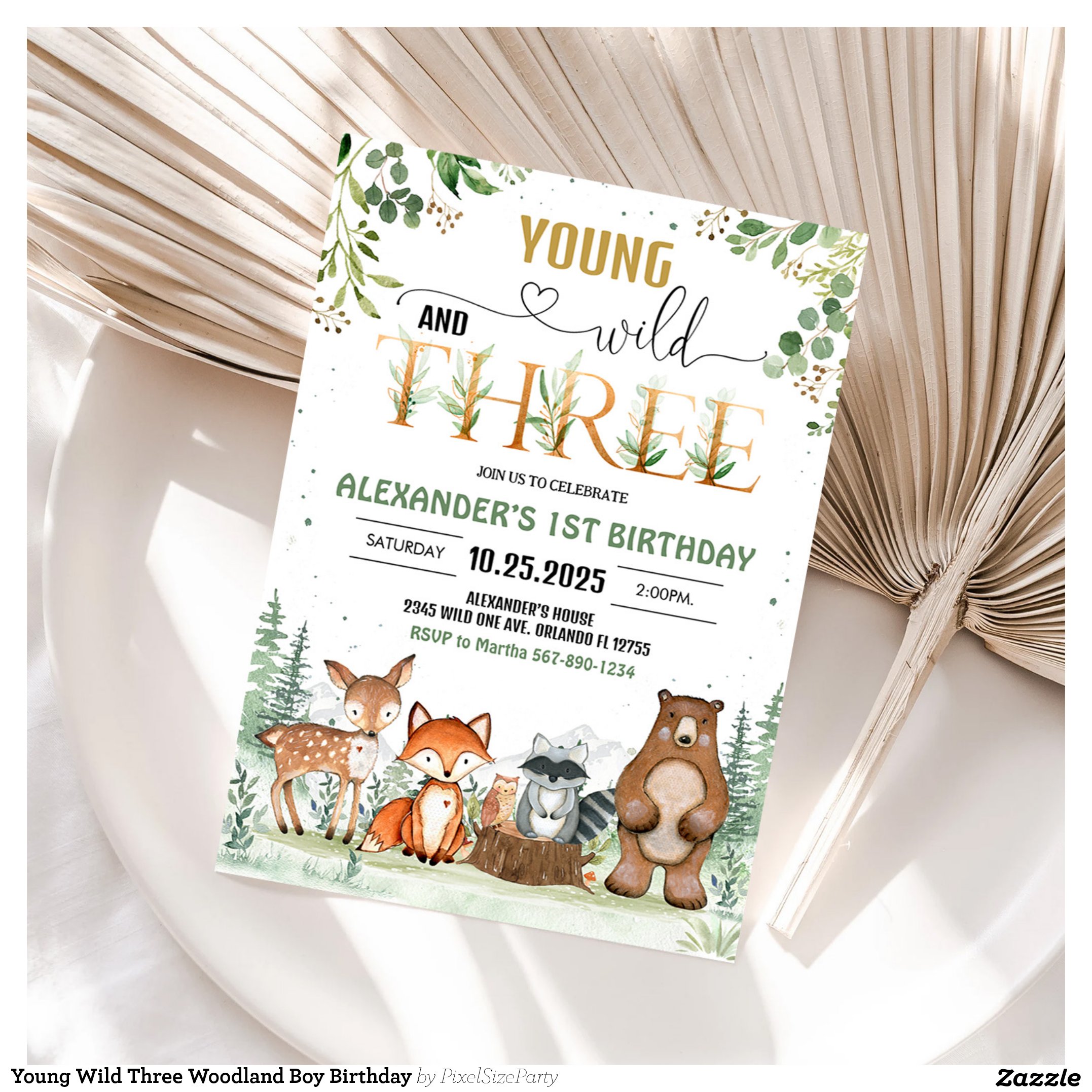 Be the first to review “Young Wild Three Woodland Boy Birthday Invitation”